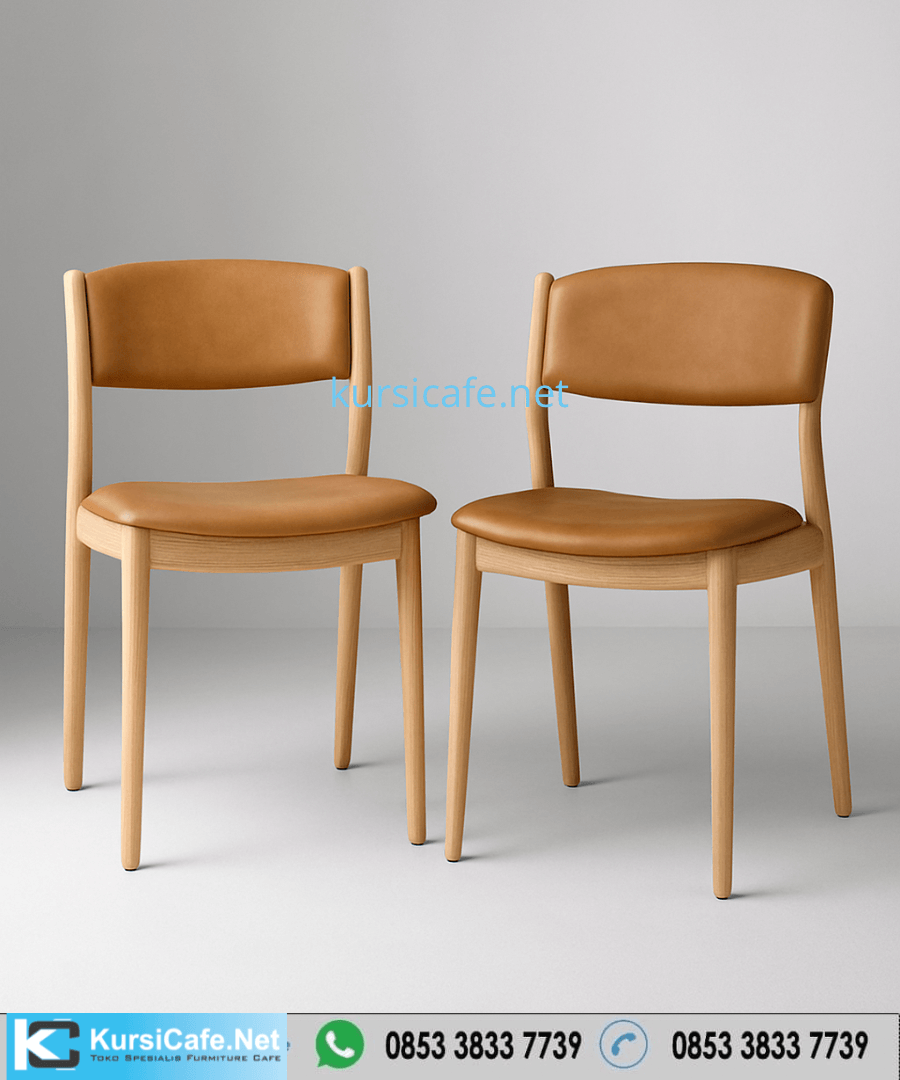 Jual Kursi Cafe Kayu Scandinavian Jok Kulit Coklat Minimalis Harga Murah